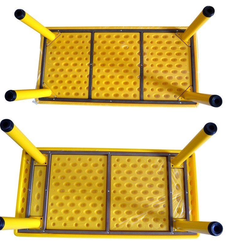 Mặt bàn là nhựa nguyên khối ,4 chân là sắt ống tròn có ốc vít vặn kèm |