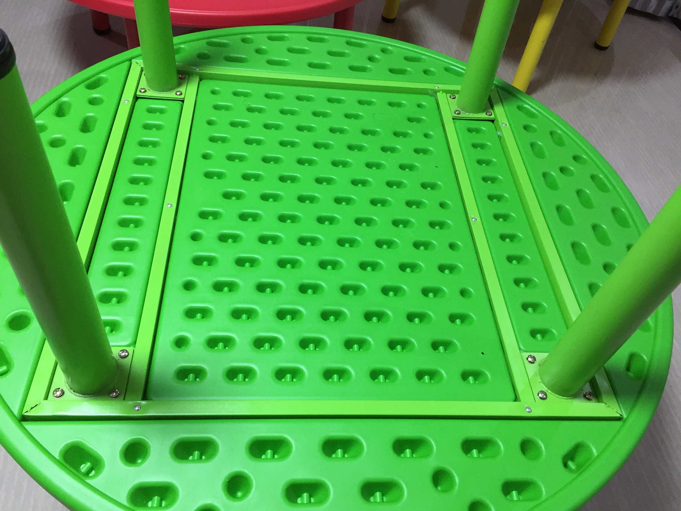 Thành phần | Mặt bàn là nhựa nguyên khối ,4 chân là sắt ống tròn có ốc vít vặn kèm |