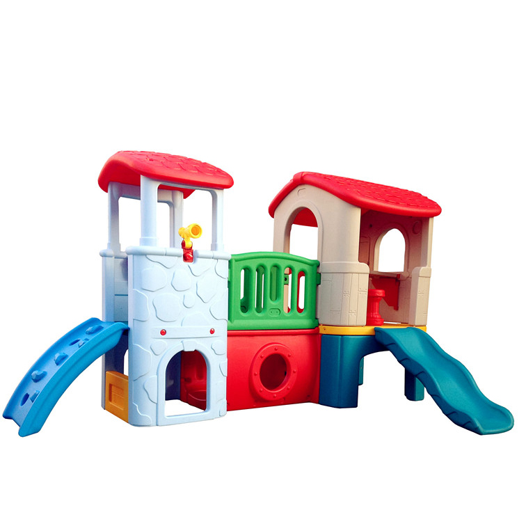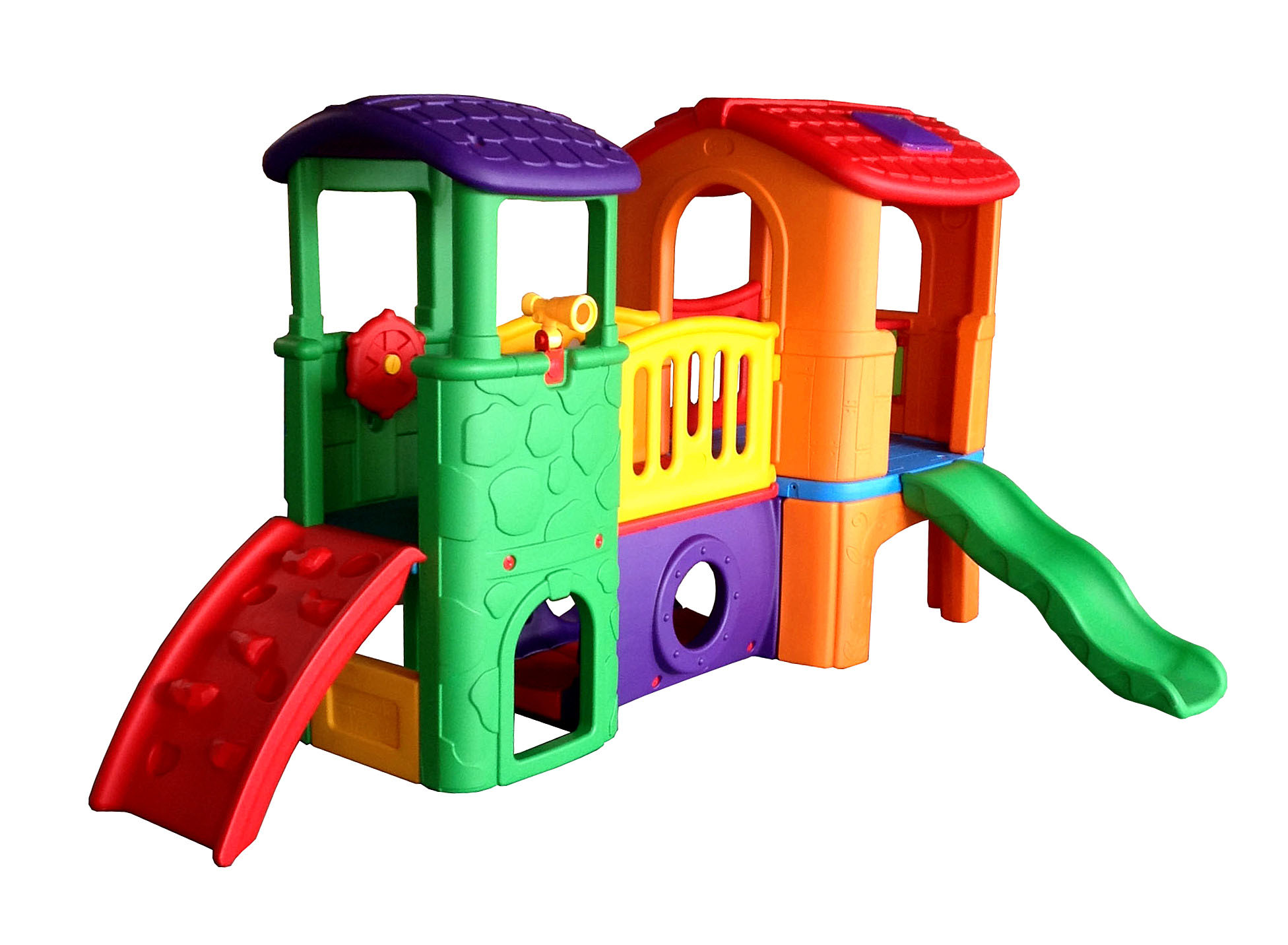 Thành phần | Bậc thang lên xuống, cầu trượt, 2 sàn chơi có mái và các phụ kiện đồ chơi khác |